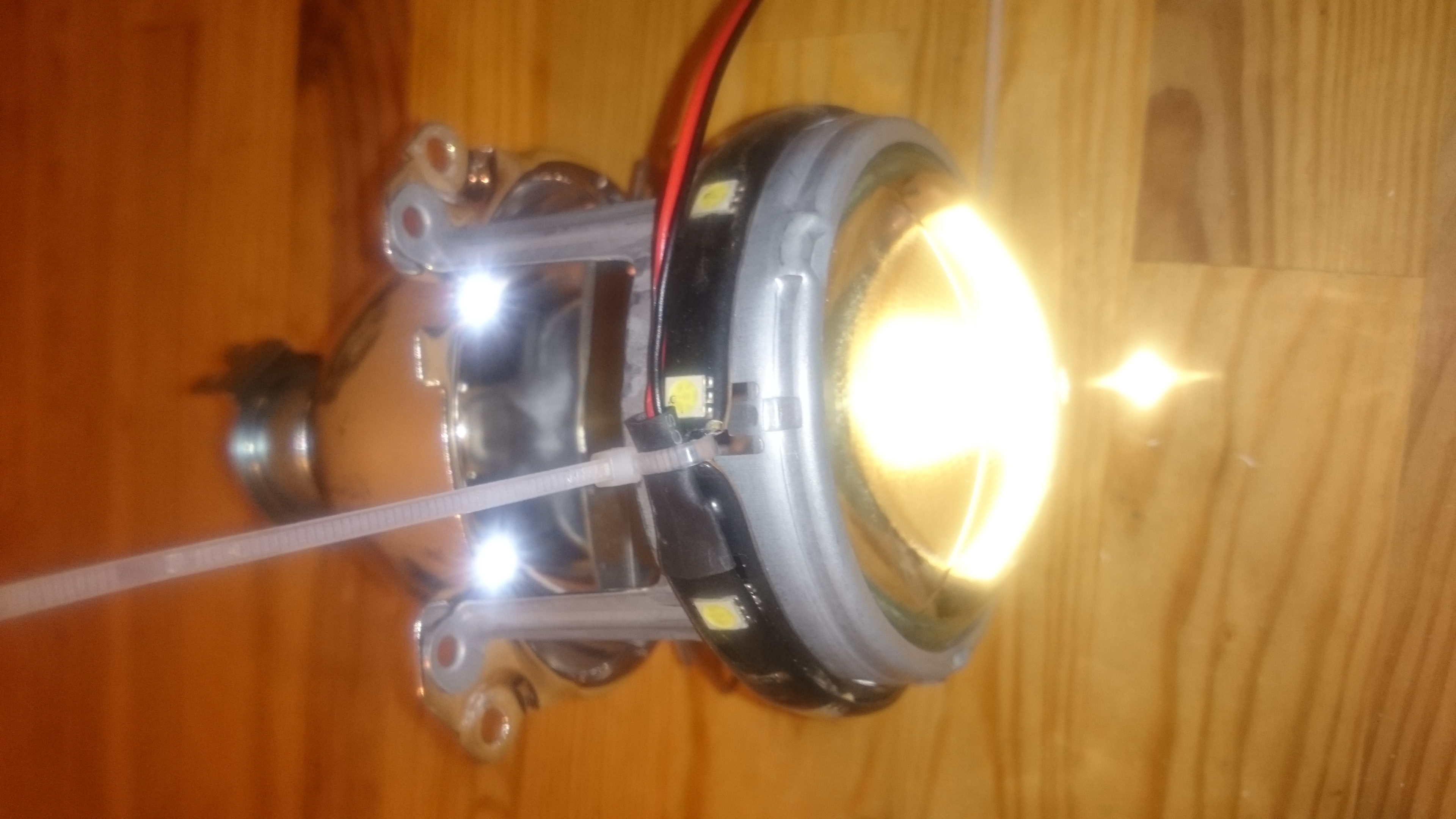 Am montat un fel de angel eyes, doar că mult mai discret. Am folosit doua benzi autoadezive cu leduri și am securizat lipitori cu bărbate de plastic. Conexiunea electrica am făcut-o la alimentarea pozițiilor. Investiția este una minimă, practic 7 euro pentru patru astfel de benzi (am folosit doar doua din ele).