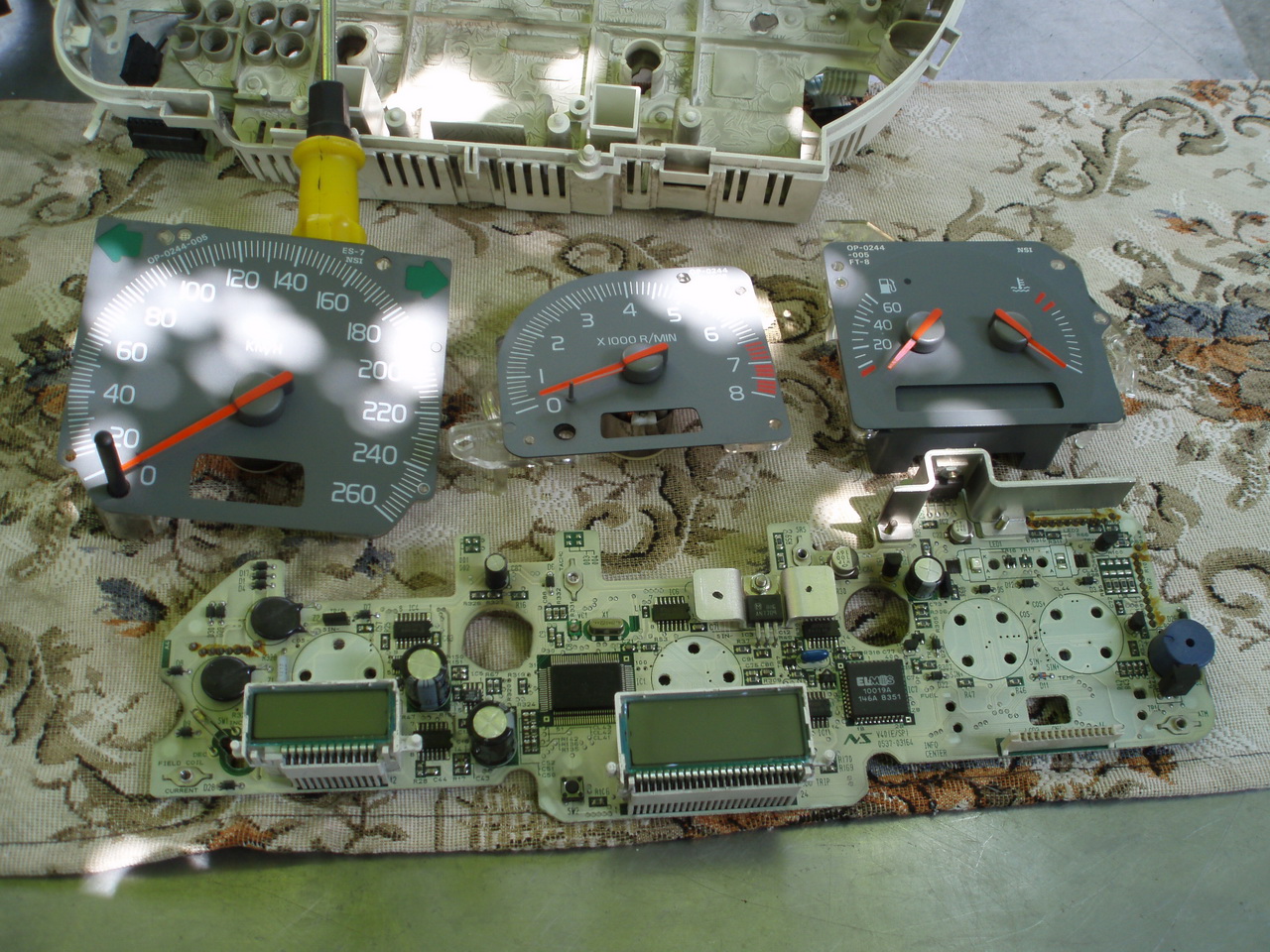 Se ia bordul vechi (cel fara info), se desface bucati, se da tot jos, de la motorase pana la display sa ramana placa de baza goala.