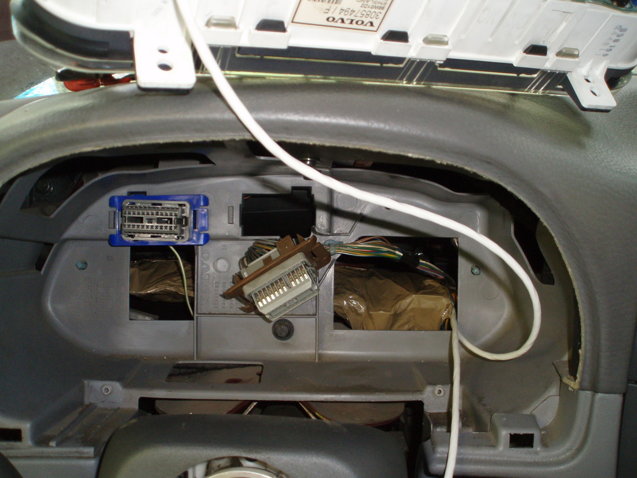 Acuma placa de baza de la bordul vechi se monteaza in spatele mufelor de bord, inspre parbriz, adica placa de baza de la bordul vechi nu este in bordul nou este in afara lui. Eu am gasit loc super ok in spatele celor 2 mufe si le-am prins cu 2 bride.